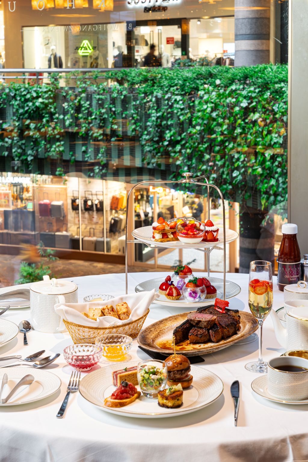 ※ 追加料金8,580円(税込・サービス料別)で、当「アフタヌーンティーセット」にステーキセット「テイスト・オブ・ニューヨーク」(330gの骨付き熟成サーロインステーキ、マッシュポテト、クリームスピナッチ添え)を加えたアップグレードオプションもご用意しております。